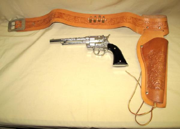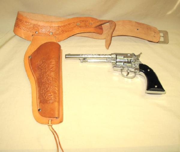 neat gun that makes a ricochet sound when you pull the trigger, works good, large size, nice old holster too