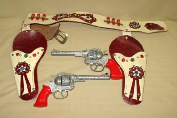both guns work, have some corrosion and general wear, holster is fancy, mis-matched set