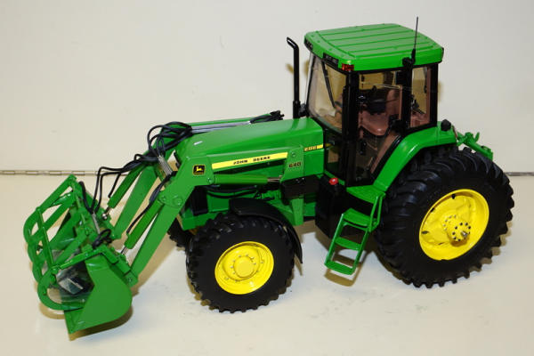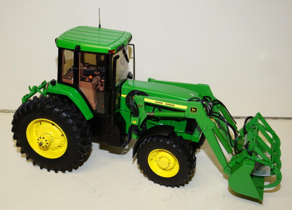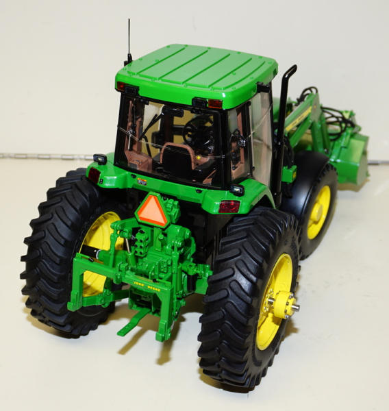 JD Loader w/ grapple plumbed into remotes, 20.8" LTS custom rubber, rear axle hubs w/ gold bolts, front fenders, reg muffler, side console, 3pt quick hitch, new style steps, all lights, levers, pedals & flashers
