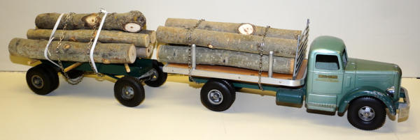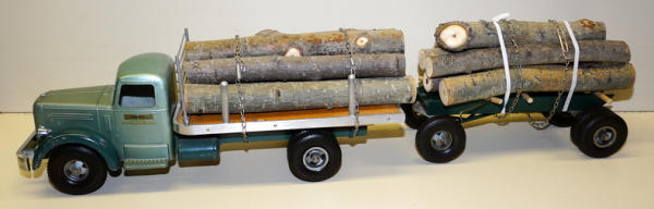 Truck is mostly original paint; cab top has been touched up trailer has been repainted, overall condition is 85% or better; comes with an authentic load of Canadian logs!