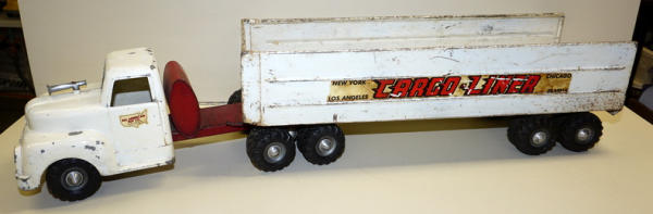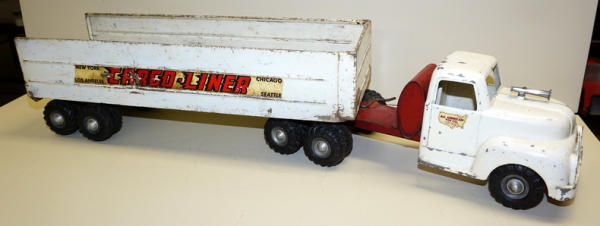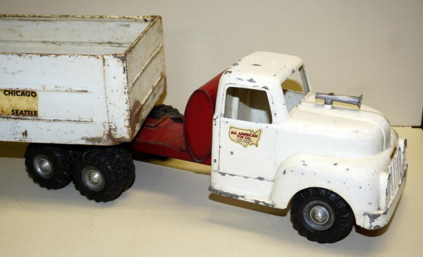 Original paint is about 70%, replacement 5th wheel plate has been put on, trailer alone is 2' long, large & impressive old truck