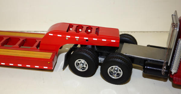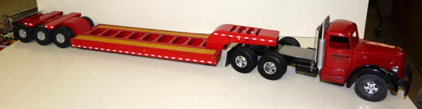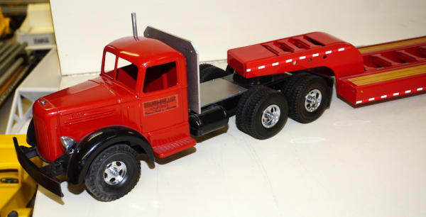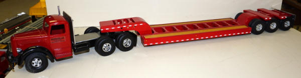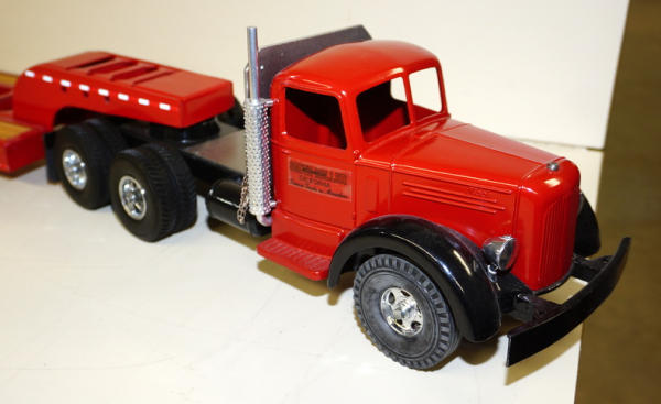 Old Truck restored & Customized, nicely done in 2-tone black & red paint; Trailer is 100% scratch built from metal with wood decking; over 4' long when hitched, super sharp piece, would look great with a 4-wheel drive to display, nice piece built by Vern White