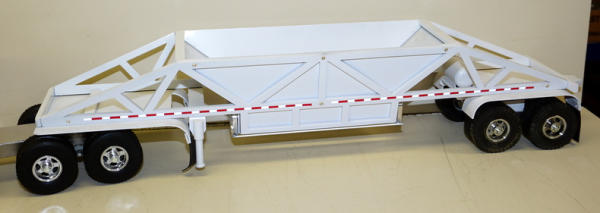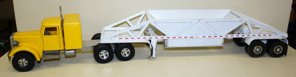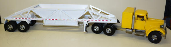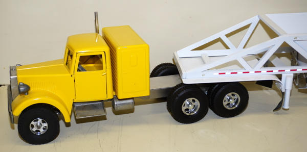 Old cab restored, custom sleeper added; trailer is all scratch built from steel and super sharp, about 3.5' long overall; could use a detailed cleaning, nice piece built by Vern White