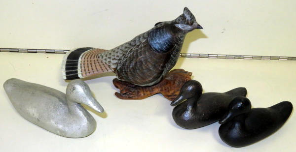 quail is signed on bottom "S. Hatfield"; biggest duck is 5.5" long; ducks are very heavy cast; all to go one money