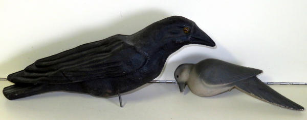 crow has glass eyes; Dove is styrofoam; both very nice; sell for one money