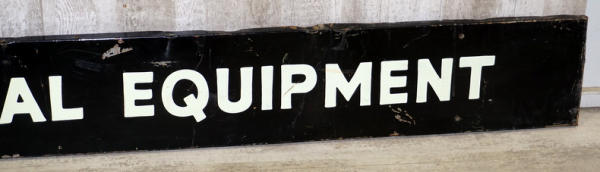 10"x84", heavy damage and part of the sign missing on the left side, has wood back, believe this is part of an IH larger sign