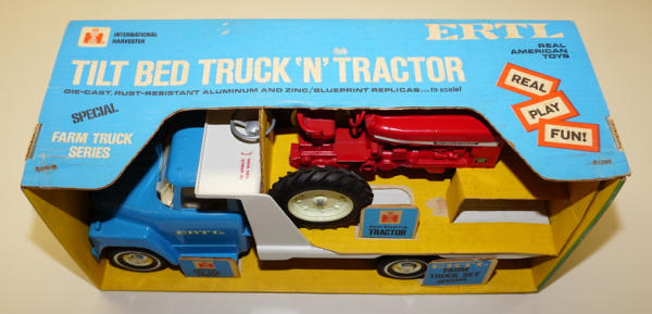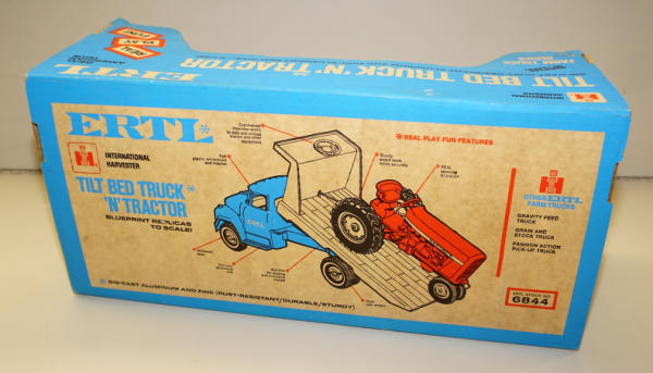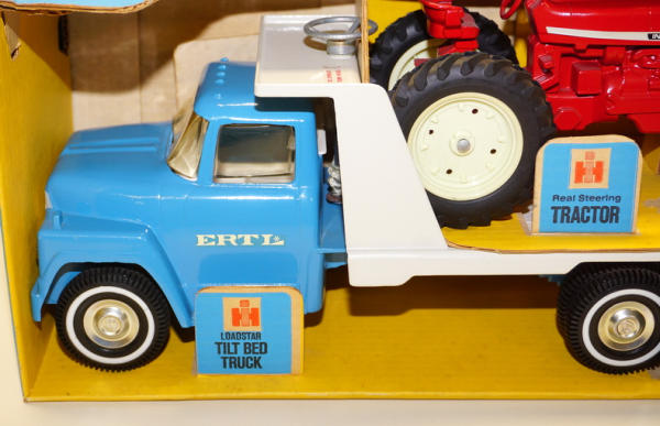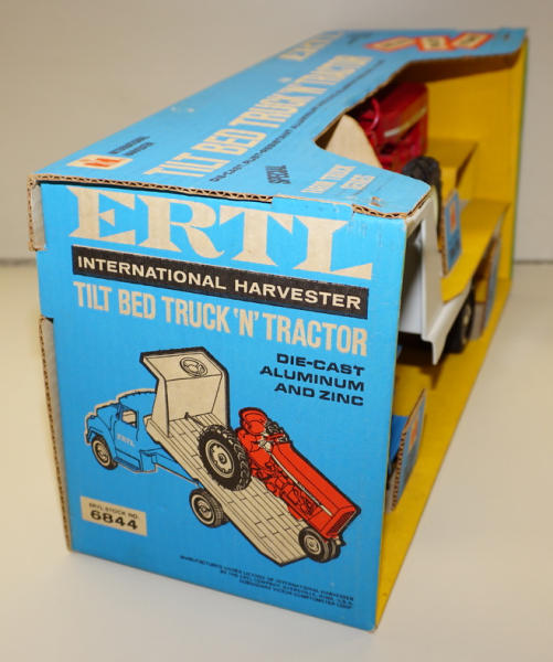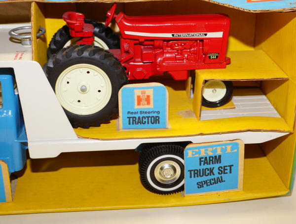 Mint toys, Truck has T-S Hubcaps and painted grill; Tractor is correct narrow plastic rims with a 544 Decal; box has the holder for the tractor which is really hard to find; box has some general wear, staples have been removed from the top, overall a 8.25 condition box