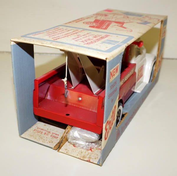 Spoke hubcaps, driver & Touch-steering; near mint toy, some wear to the decals on the bed, box has some age spots and general wear, rates 8.25 condition; another scarce loadstar
