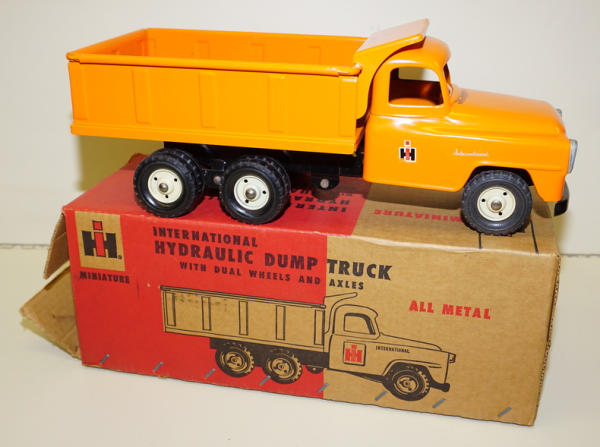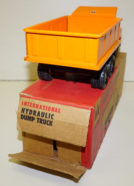Near mint original toy, minor edge wear, really unusual IH decal on the top of the box, box rates 8.75 condition