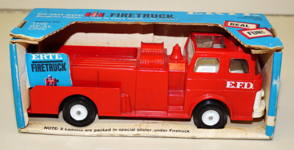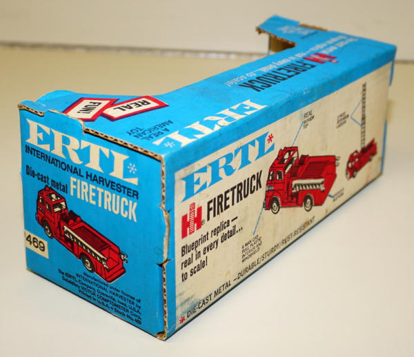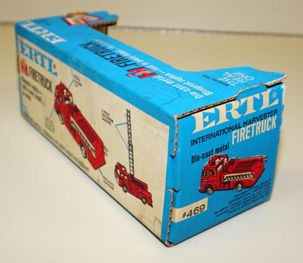 9" long, similar to the Astro line of toys, mint toy, ladder is in a bubble holder under the truck, box has some light water stains, overall box rates 8.25 condition; if you are a blue box collector, this is a really rare little toy!