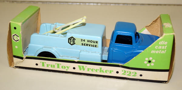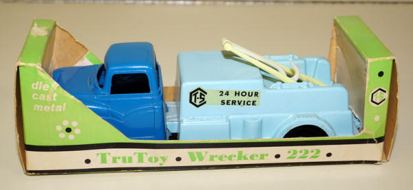 9" long, about 1/32nd scale, near mint toy, has the plastic wrecker boom, could use a detailed cleaning; box has edge wear and a spot of tape burn, box rates 7.5 condition
