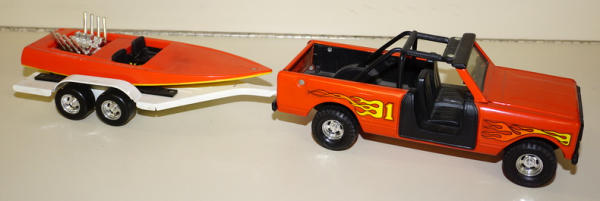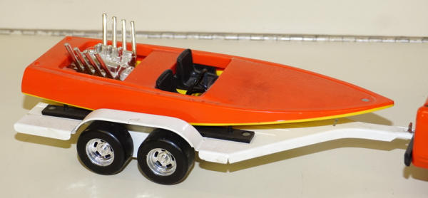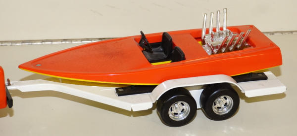 Orange Truck & Boat version w/ White Trailer, all pieces are near mint, but no box, sells as a set
