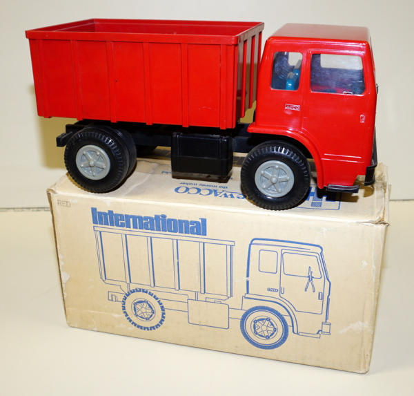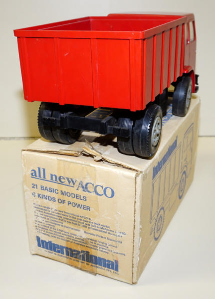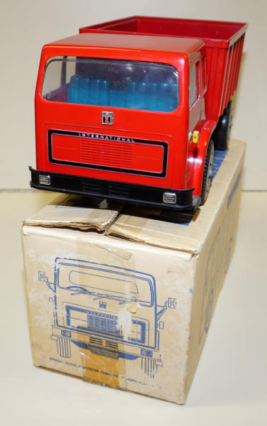 1/16th scale, light plastic, pretty nice detail, looks like a dump truck, but the bed is stationary, near mint toy, box rates 8.5 condition, never seen one