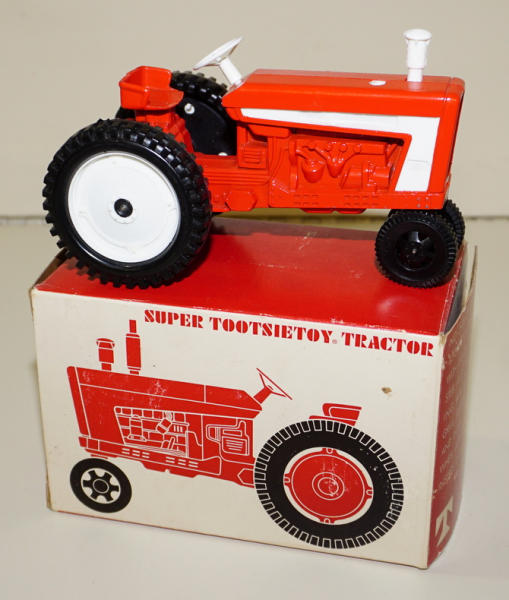 Same casting & toy as the previous lots, but marketed by Tootietoy and marked "Farmall 504", toy is near mint, but missing a muffler; box is complete with wear, rates 8 condition
