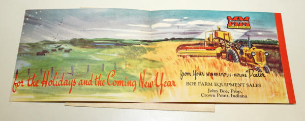 Neat piece, 3-panel foldout showing a great image of tractor & combine, comes in the original plain envelope, nice piece