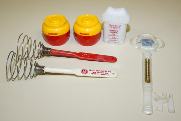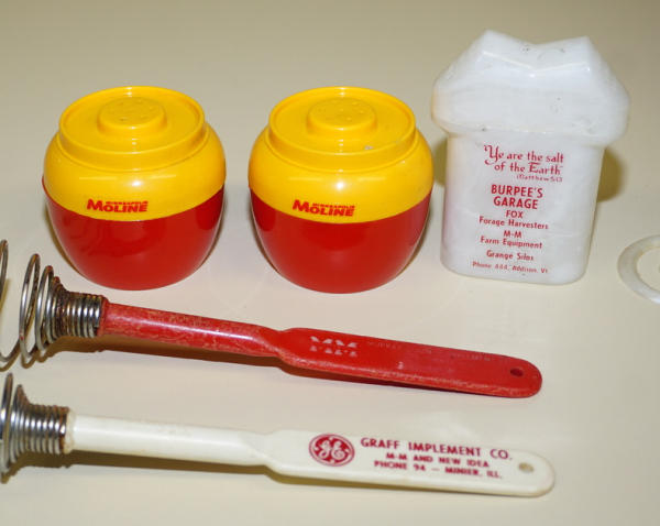 all plastic pieces, I think the logo was added to the S&P shakers, but definitely MM colors, all to go