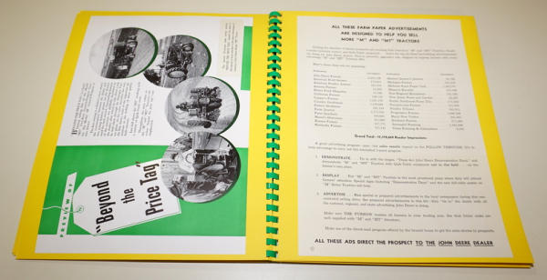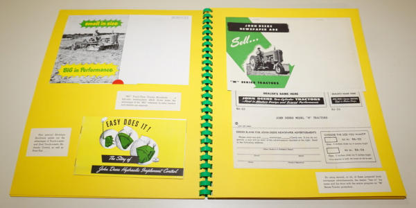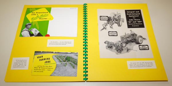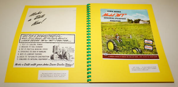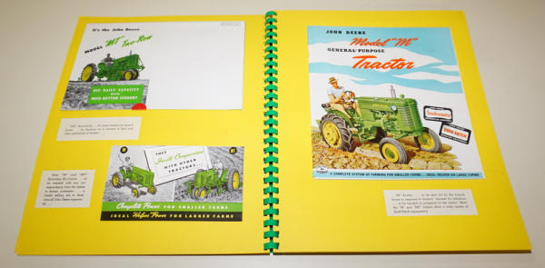 Really unique piece, 13.5"x11" Scrap book from JD Corporate that is full of original MT/M Brochures and advertising; probably used by a Territory Rep to show dealers the new literature and sell the dealer on the M/MT Models, super clean, super nice condition and probably the only one in existence