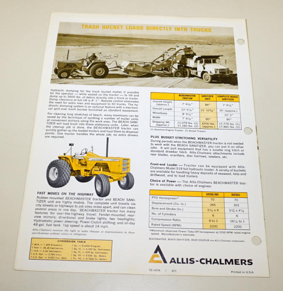 3-page foldout, clean and nice with binder holes punched, very hard to find piece on an unusual model of the 190 tractor
