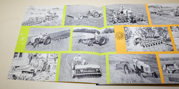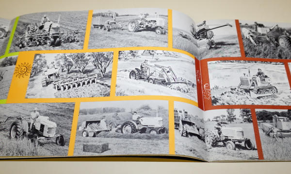 40 pages, full of complete line of tractors, implements, combines & construction equipment in color, embossed cover, minor wear, but overall nice, great piece of Case literature