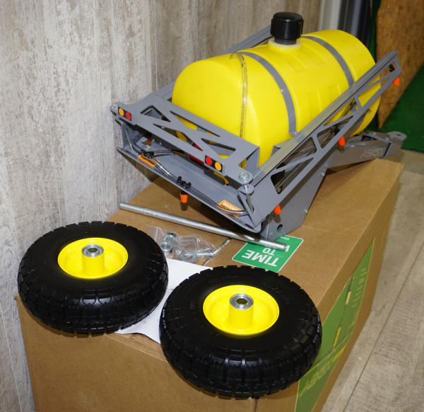 Brand new in the box, file photo used, made by the Sprayer company, has an electric 12v pump and will pump water! Poly tank, rest is steel, built just like the real one!