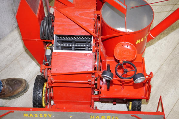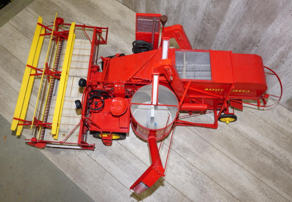 5' long, about 30" wide, all built from wood and steel; has a DeWalt 110v Electric Drill to power it, but cord has been cut, so we did not test; no shipping