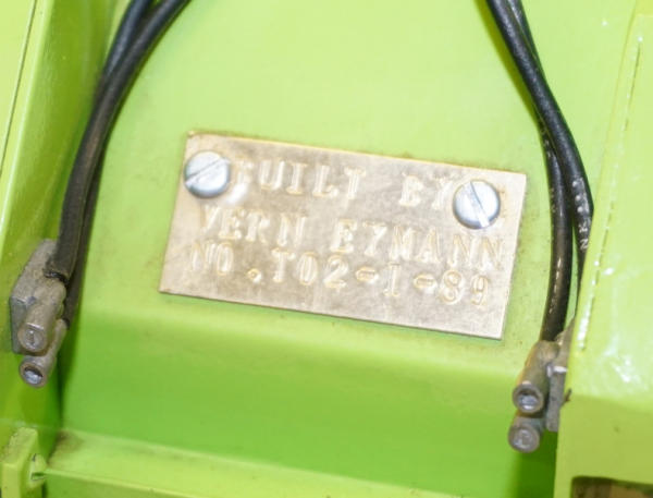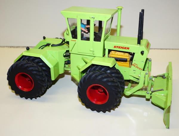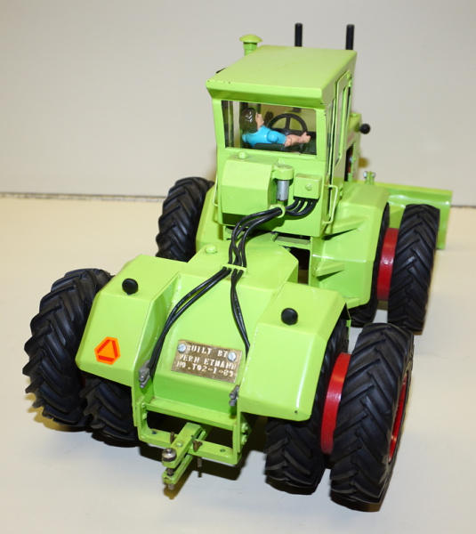 1/16th scale, 100% scratch built from heavy steel, all welded and screwed together, blade is all scratch built too, brass plate on the back marked "No.T02-1-89"; NOTE--All these Vern Eymann tractors came directly from his personal collection and we are selling for is wife & kids! Once-in-a life time chance to buy models from this is legendary Steiger builder!