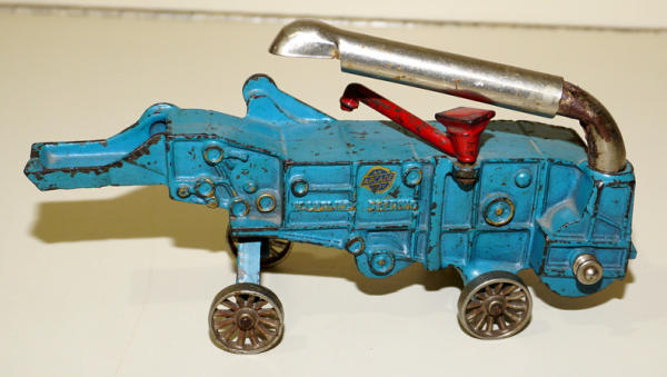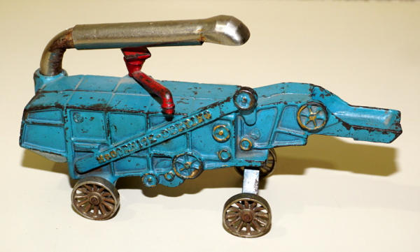 10" long, has the belt pulley, all original parts, missing wire hitch, paint is 85% or so, overall a pretty nice example