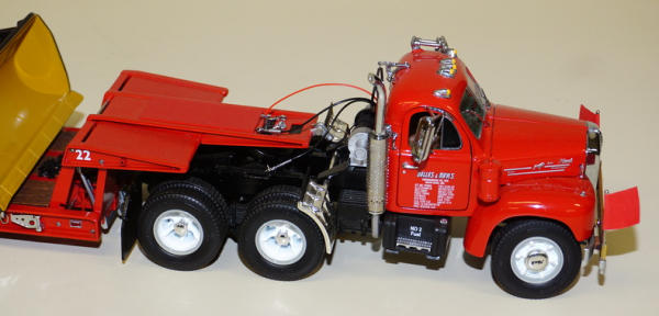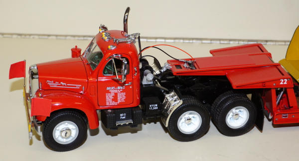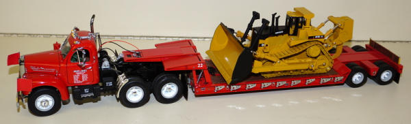 Truck is 1/25th scale I believe, Dozer is probably 1/50th scale, but looks good on there, all nice & high detail, no boxes, sells as a set