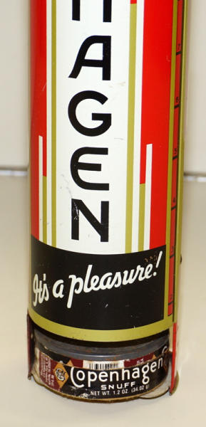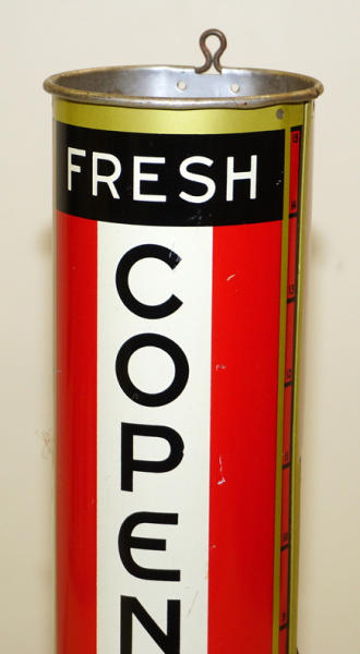 14.5" tall, clean and nice, few light scratches, rates 9 condition, comes with one old can too