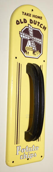 13.5" tall, metal with plastic handle, embossed steel "Vernon Co., Newton, IL", light wear