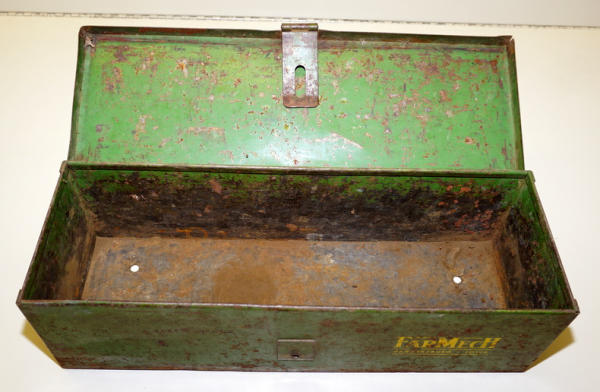 heavy paint wear, but straight, missing part of the lock, 18"x6.5"x5.5"