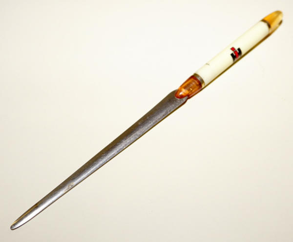 8.5" long, colors on the caps are faded out, unique advertising