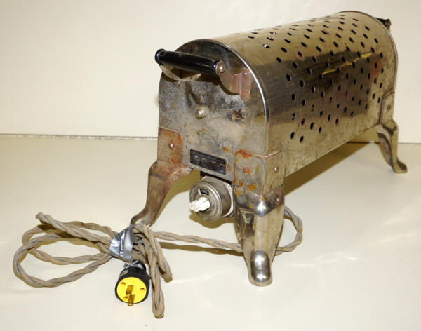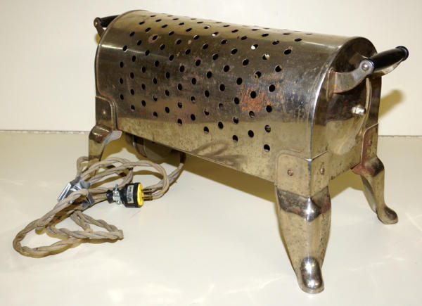 20" long, about 11" tall, pretty neat old nickel plated heater, did not test, has original cloth cord, would look pretty cool if you spent some time with some polish
