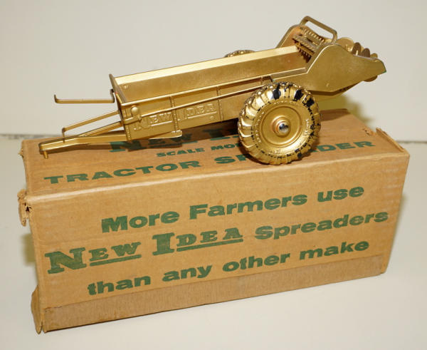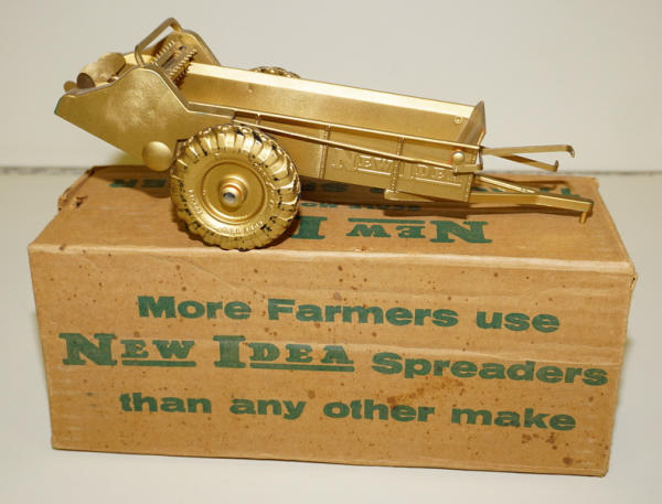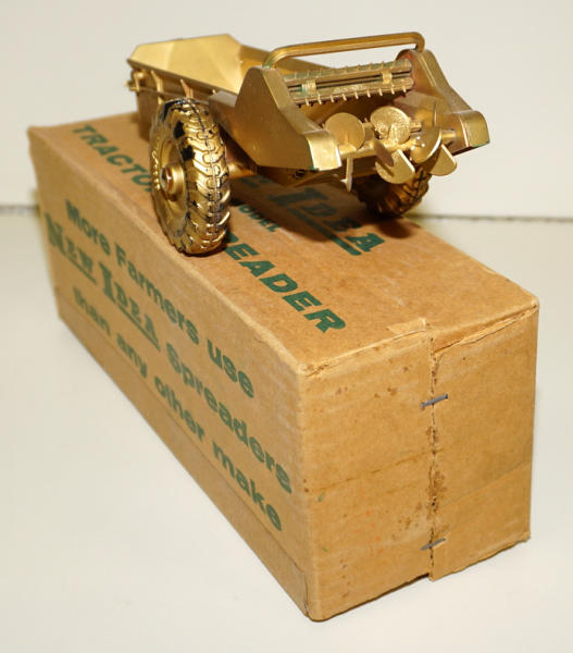 Nice original gold paint spreader, a little flaking on the wheels, box has some age spots and wear, box rates 8 condition