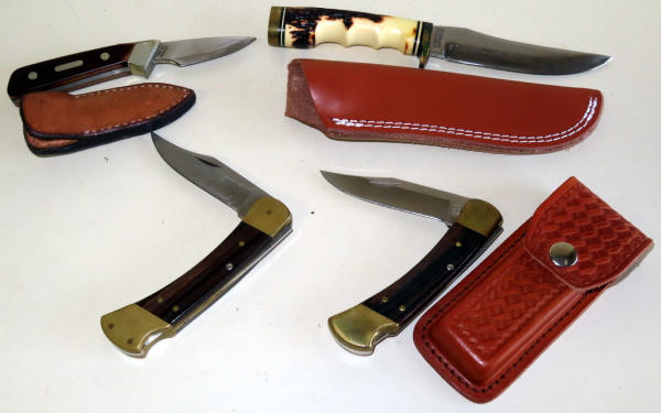 all are like new; the large fixed blade has a 4.5" blade; sell 4x the money