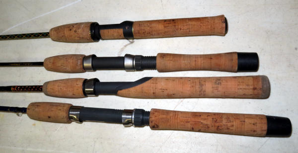 all look like new; cork handles; lightweight with 3 being 5' and one 4'6"; sell 4x the money