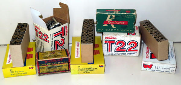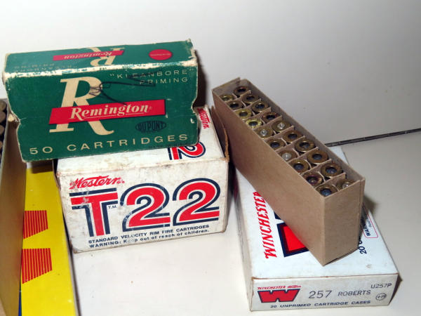 brass includes 30-40 Krag, 243 Win, 45/70 Gov. & 38 Spl; selling for one money