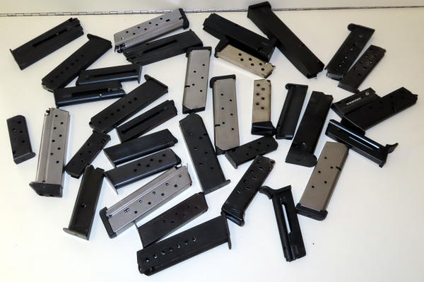 these are all unmarked magazines; not sure what they all go to….look like some are probably 1911s; sell for one money