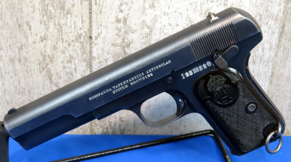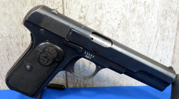 MRE; 5" Stainless Barrel; plastic checkered grips; nice; lettering has been painted white; believe made in Belgium; SN#11820