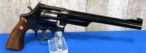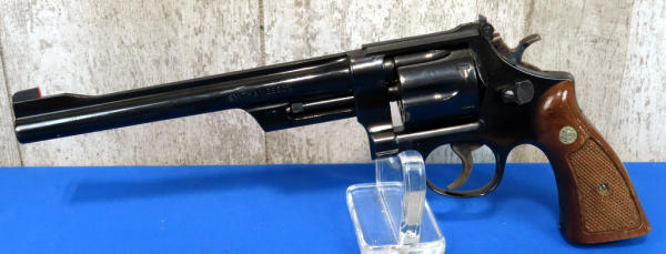 MRE; 8-3/8" BBL; wood checkered grips; 6-shot swing out cylinder; front sight been painted orange; nice; made in USA; SN#N185674