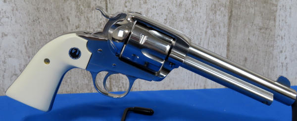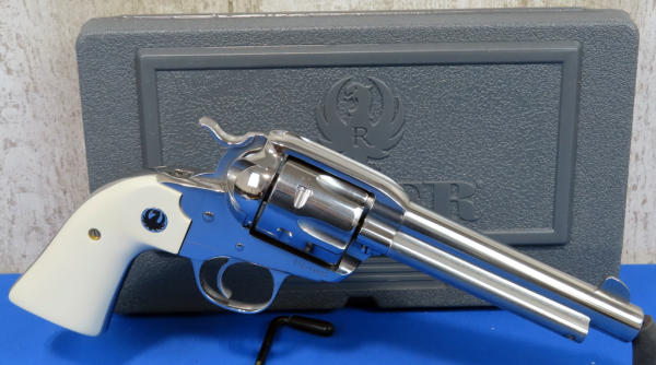 GWE; 5.5" Stainless barrel; 6-shot fixed cylinder; factory hard case; like new condition; low profile hammer; smooth white grips; made in USA; SN#512-94955