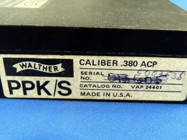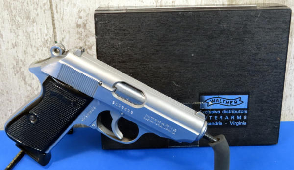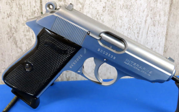 GWE; 3.25" Stainless barrel; plastic checkered grips; factory case w/three magazines & two w/pinky extensions; night sights; made in USA w/Interarms on right side; SN#S003538