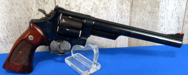 MRE; 8-3/8" BBL; wood checkered grips; fully targeted; 6-shot swing out cylinder; red ramp front sight w/rear white outline; clean; made in USA; SN#N824650