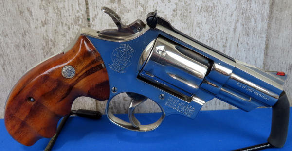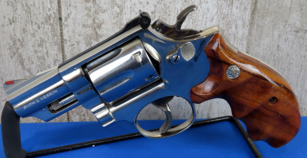 MRE; 2.5" Nickel barrel; smooth wood grips; fully targeted; red ramp front sight w/rear white outline; 6-shot swing out cylinder; used; made in USA; SN#3K95583