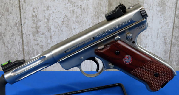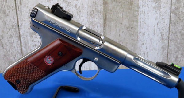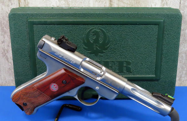 like new; 4.5" fluted Stainless barrel; factory grips w/checkering & red eagle logo; hy-vis front sight w/single white line rear; two magazines; factory hard case; made in USA; SN#229-69916