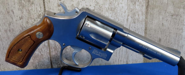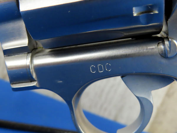 marked on left side of frame "CDC" for California Dept. of Corrections; 4-1/8" Stainless barrel; wood checkered grips; 6-shot swing out cylinder; very clean; made in USA; comes w/a plain brown non-factory box; SN#ANB2023