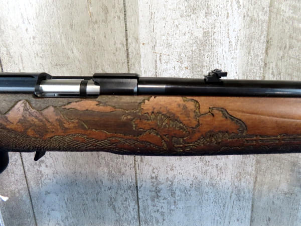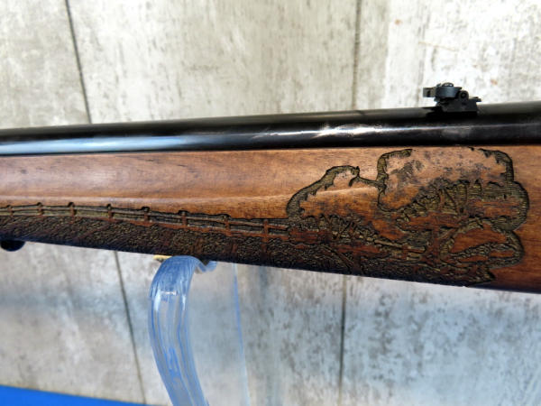 Mint & unfired; highly engraved wooden stock; 22" BBL; removable magazine; nice graphic box; SN#AFM-02047