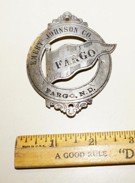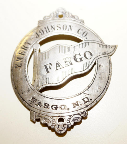 neat little piece off a front of a bicycle; Emery-Johnson was a Hardware store in downtown Fargo and they had their own line of bicycles!