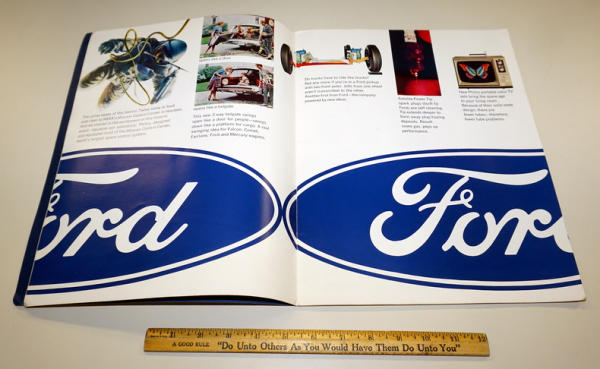 about 20 pages, large format, cover has some discoloration; full of color pictures inside including the Ford 6000 Tractor and car stuff