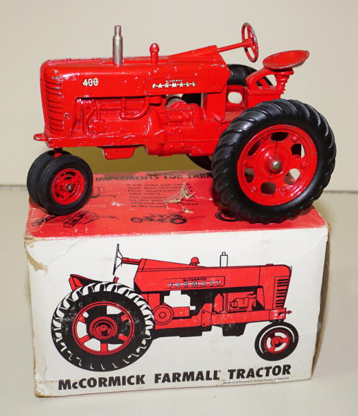 Toy is about 85% condition, has the 2pt hitch, but no drawbar; box is poor condition, but included